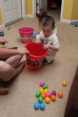 It was too wet outside so we did an indoor egg hunt. Jacob and I had fun finding all kinds of hiding places.